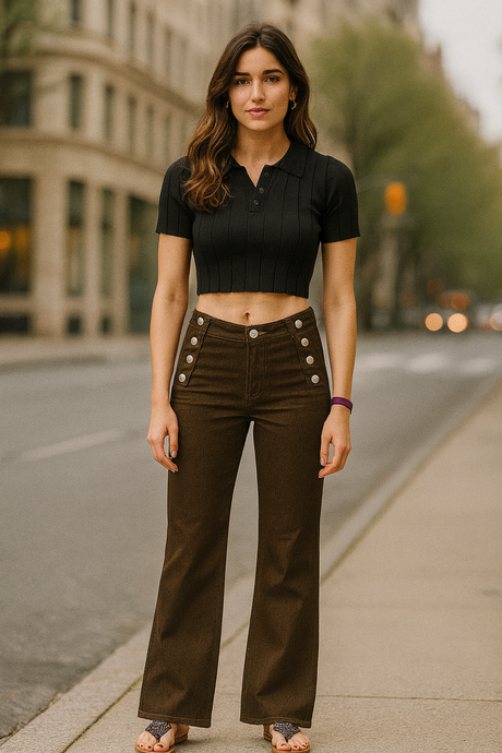 Toxik3 brown button flared jeans