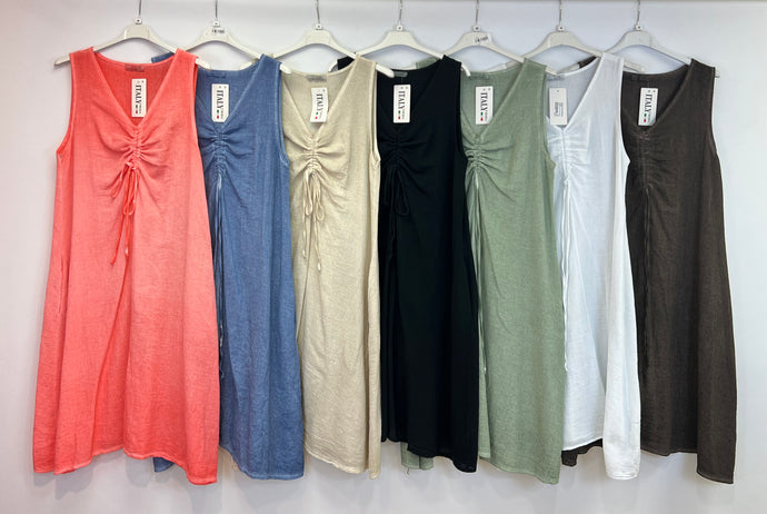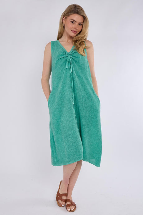 Stonewashed linen rouched dress