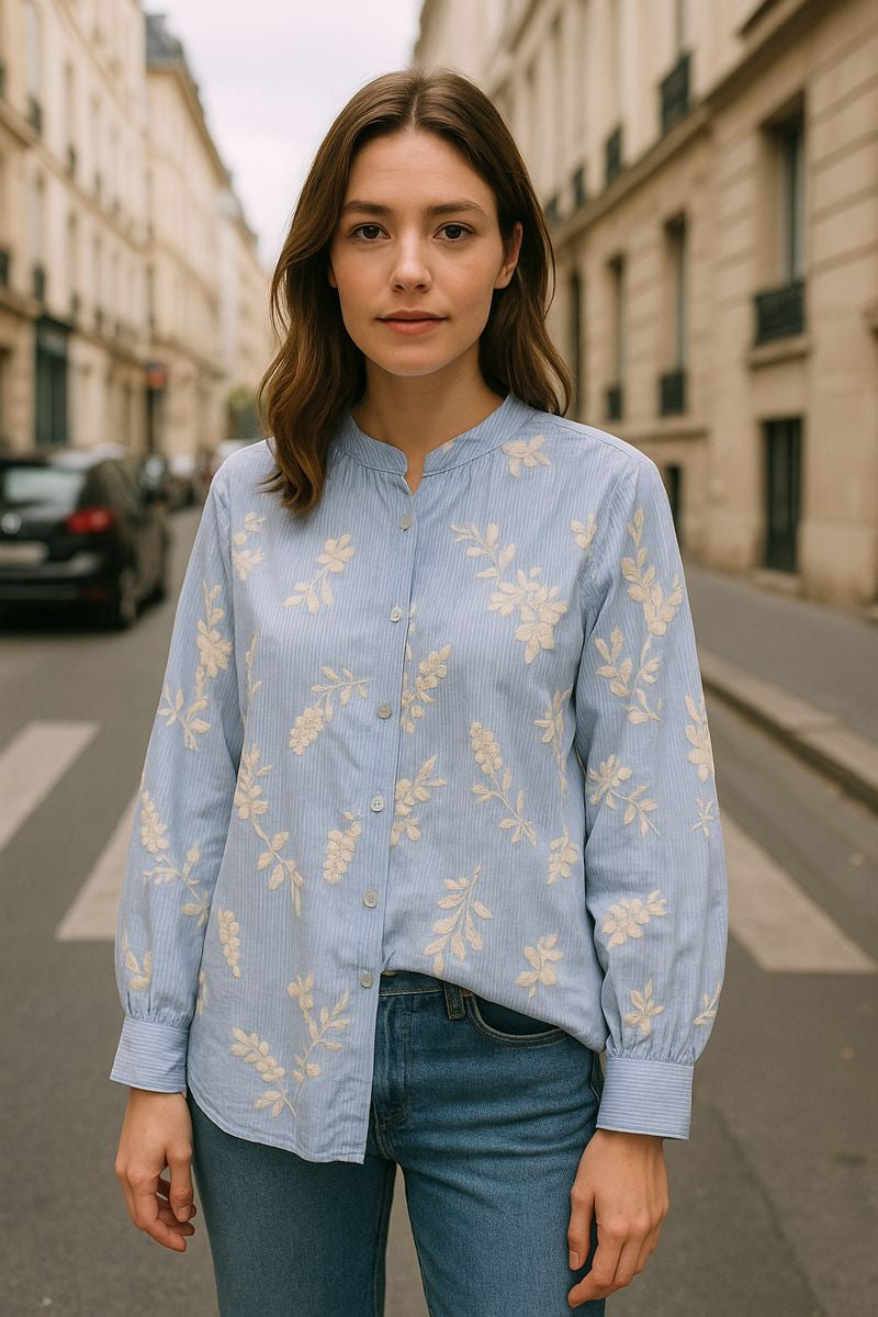 Cotton pinstripe embroidered shirt