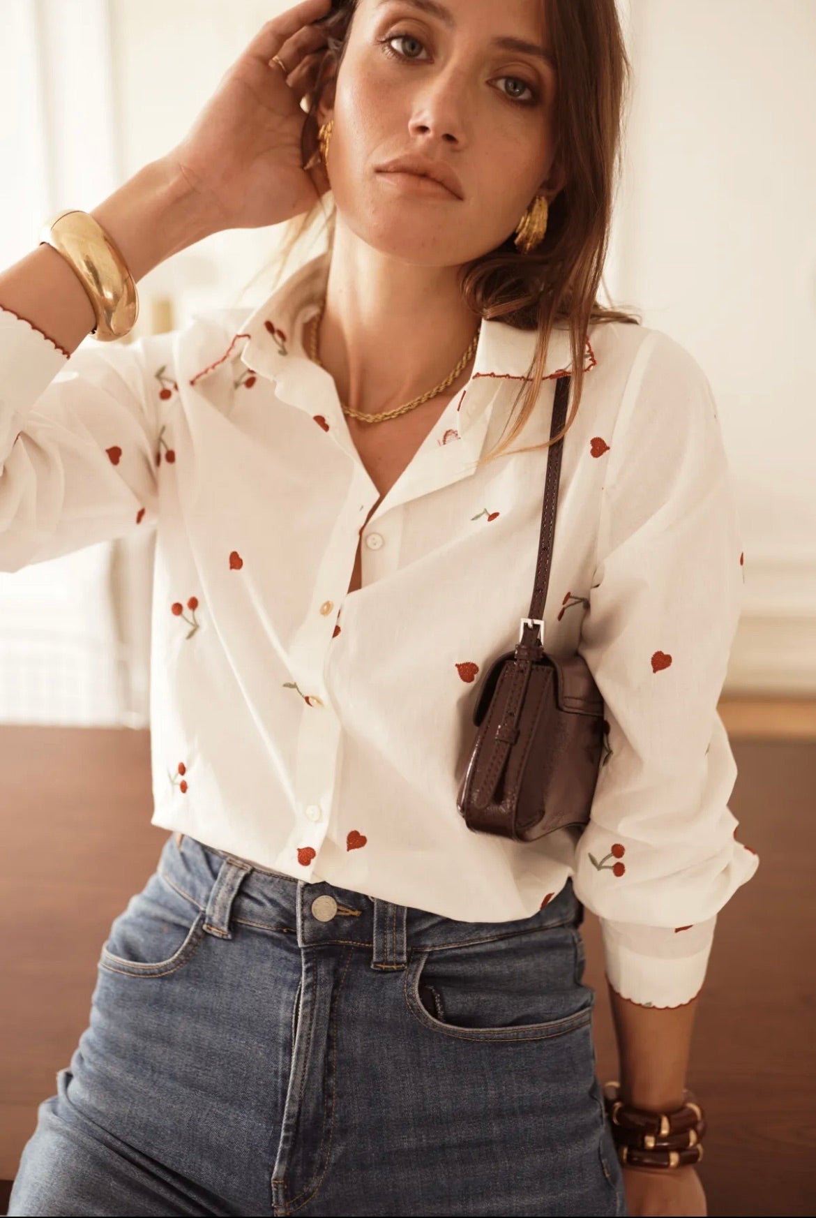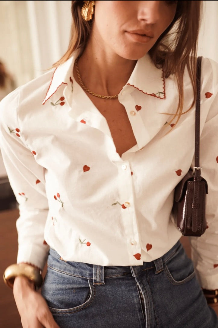 InApril 1986 cotton cherry embroidered shirt