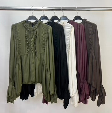 Embroidered bell sleeve top