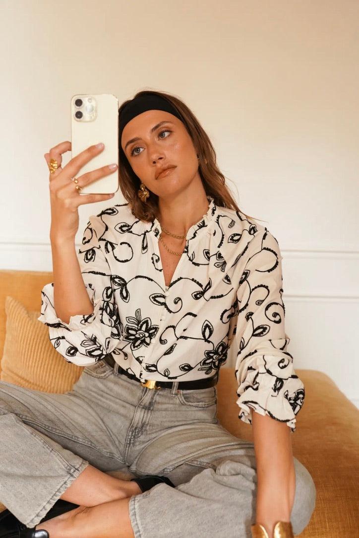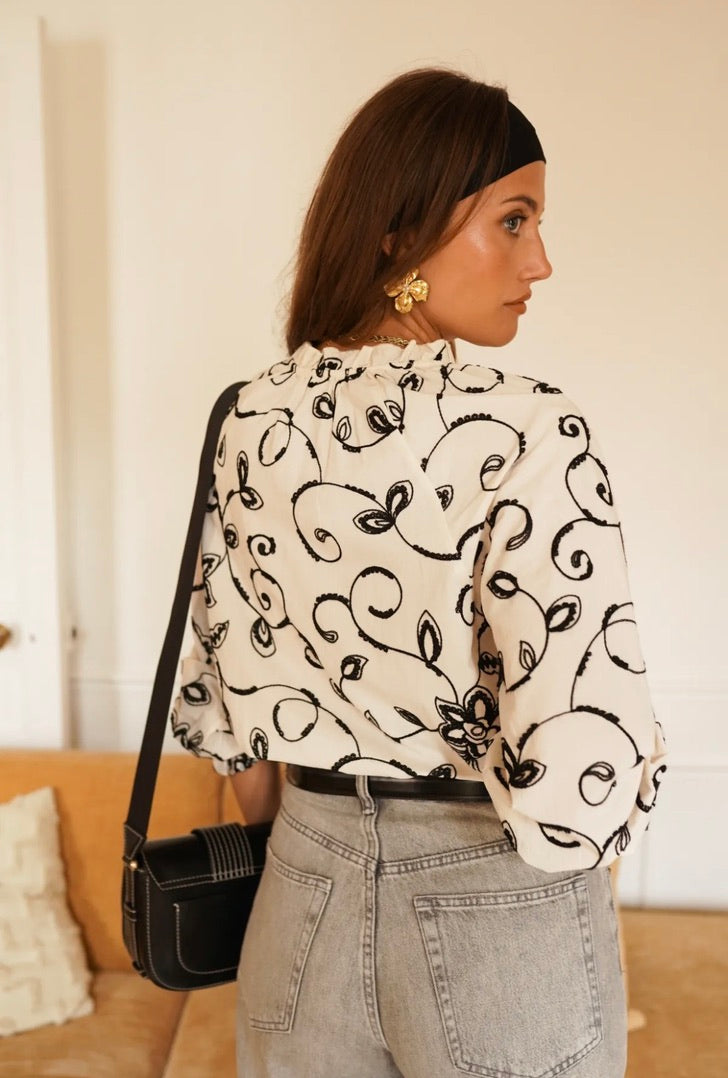 InApril1986 flower embroidered shirt